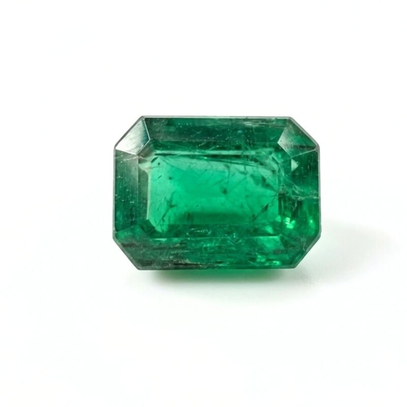 This gemstone is a natural emerald sourced from Zambia. It displays a medium green colour and is fashioned in an elegant emerald cut, making it well suited for affordable jewellery.