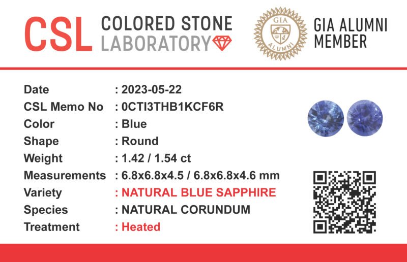 The sapphire has been professionally tested and certified by Colored Stone Laboratory (CSL), ensuring its authenticity and gemological characteristics.